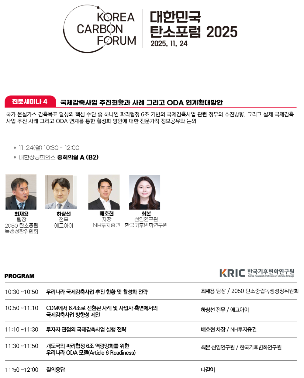 [대한민국 탄소포럼 2025] 전문세미나 4 발표자료 다운로드
